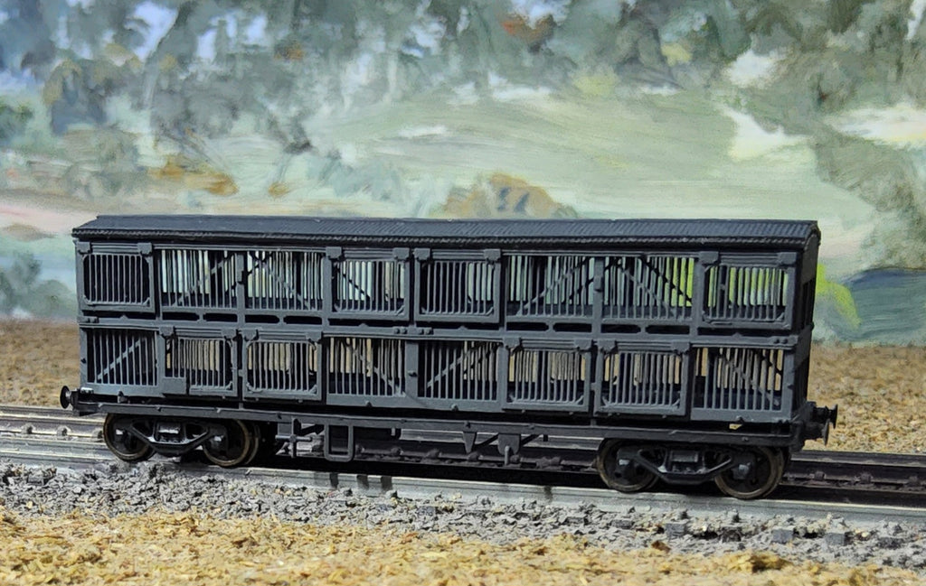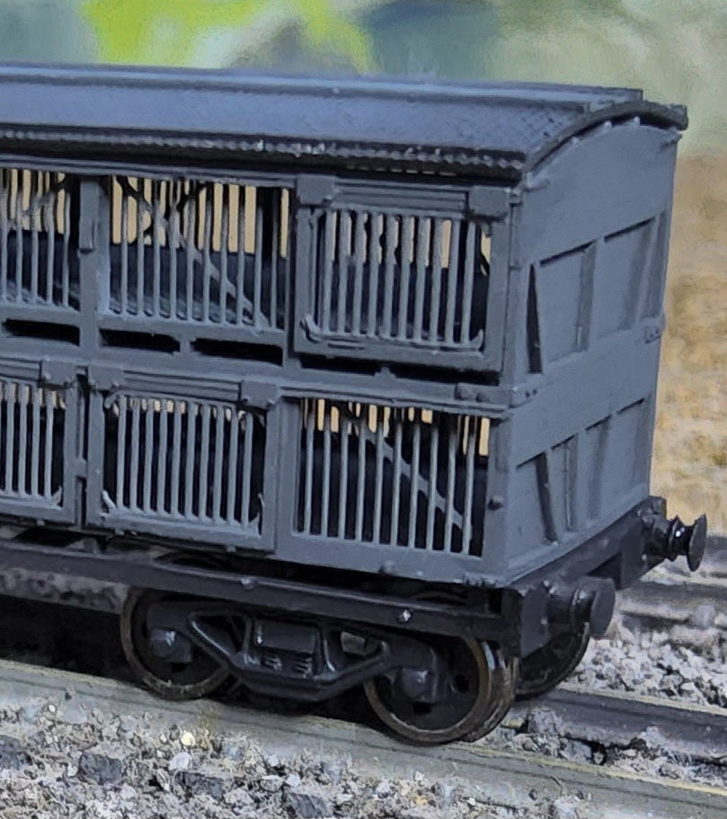 This kit represents the NSWGR BSV Bogie Sheep Wagon. 3D printed includes Bogies, Brass parts + 3D printed parts.